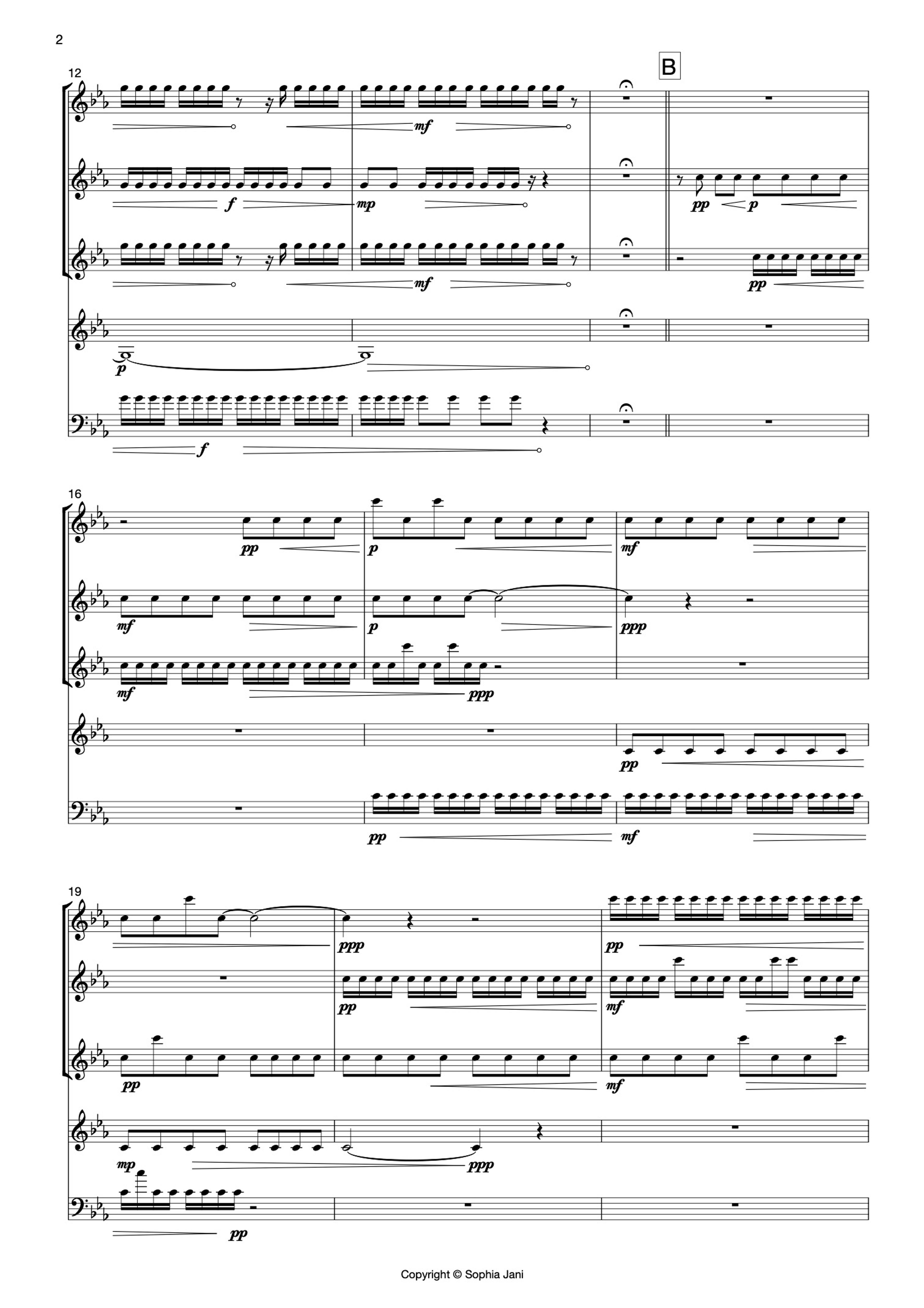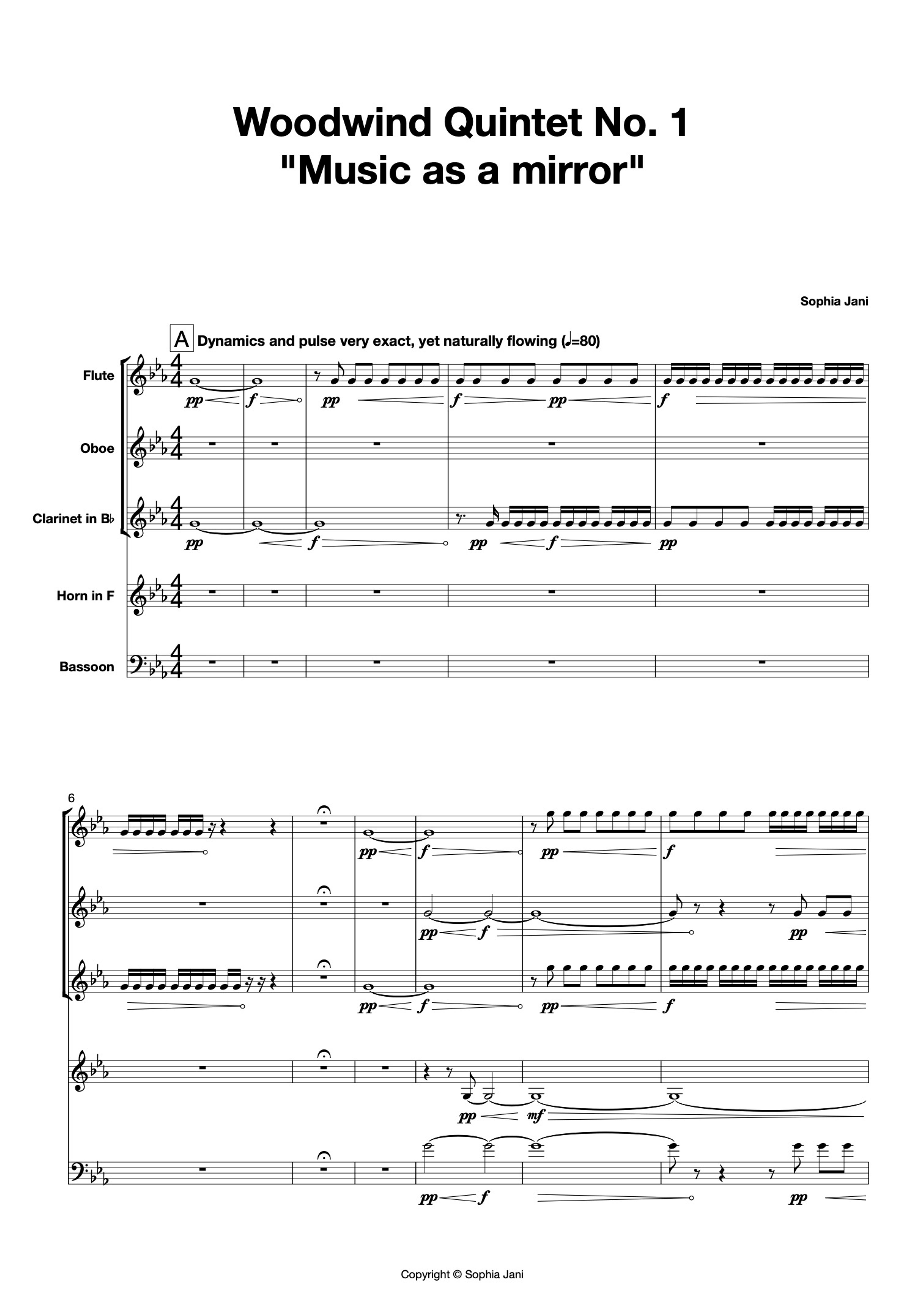 13:00 minThis is the only piece on the album that I wrote for a specific ensemble, the Dandelion Quintet. Traditionally, when writing for a woodwind quintet, each instrument is assigned a specific function within the group. I was interested in breaking with these conventions and distributing the same elements equally throughout the ensemble. My idea was to create a pulsating process that changes over time, almost unnoticeable for the listener, until the piece ends up in a completely different place as it started.