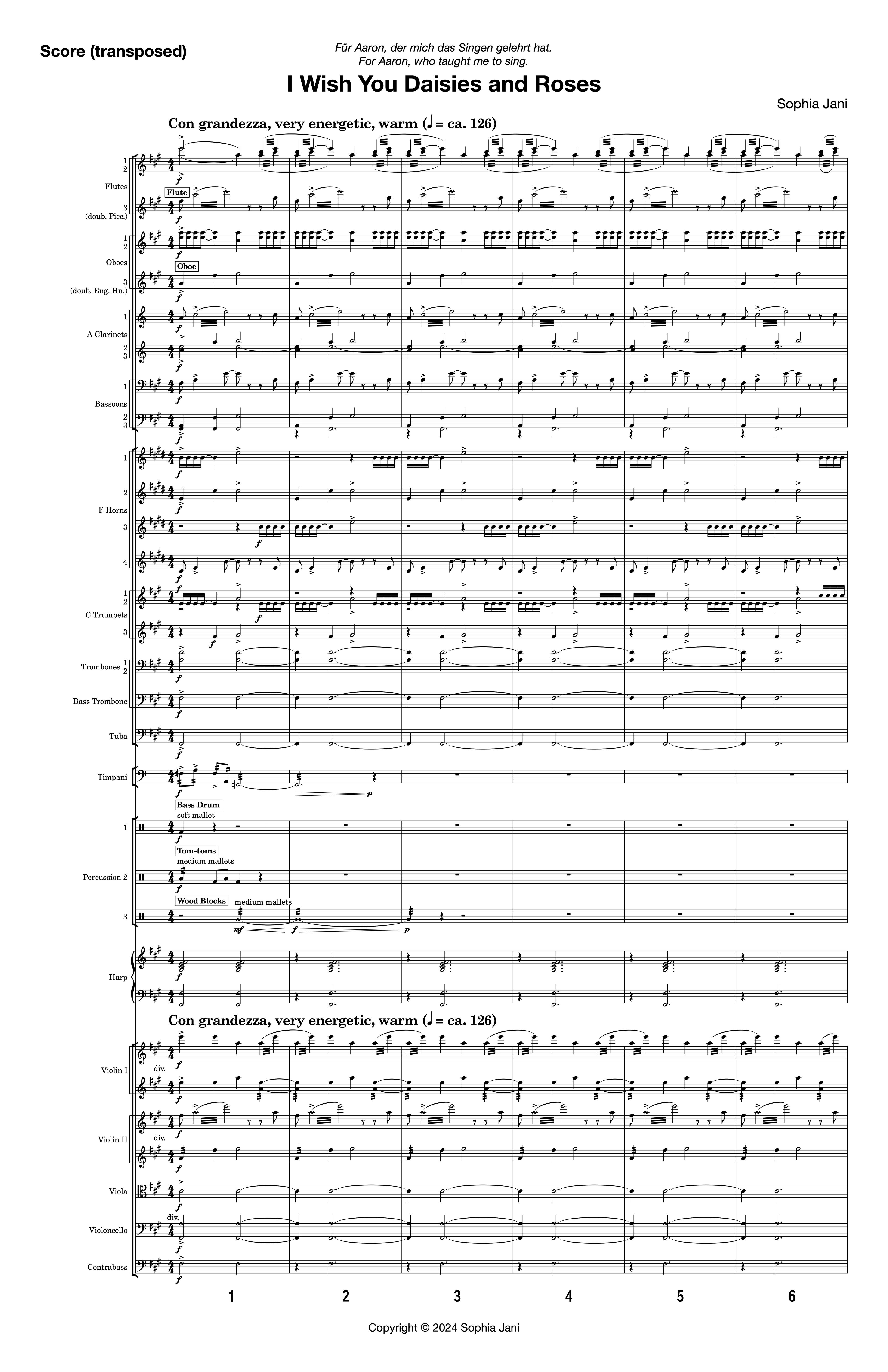 14:00 minI wrote “I Wish You Daisies and Roses” at a very special time in my life, as it was the first composition I worked on after the birth of my son Aaron. What really touched me in those first months as a new mother was the feeling of this immeasurable and infinite love that you feel as a parent and how much and with all your heart you wish your child the best for their future. I started writing this piece out of that energy and I think it guided me through the whole process.